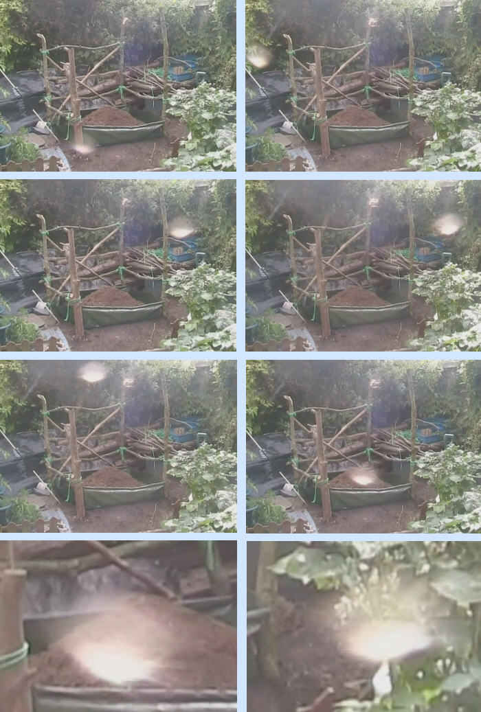 Jemand bepflanzt eine Ecke in seinem Garten. Zwischenzeitlich halten sich dort auch seine kleinen Kinder, ein Mädchen und ein etwas älterer Junge, auf. Fast während der gesamtem Zeit befindet sich hier eine feinstoffliche Wesenheit, die von der Kamera recht gut aufgenommen wird.