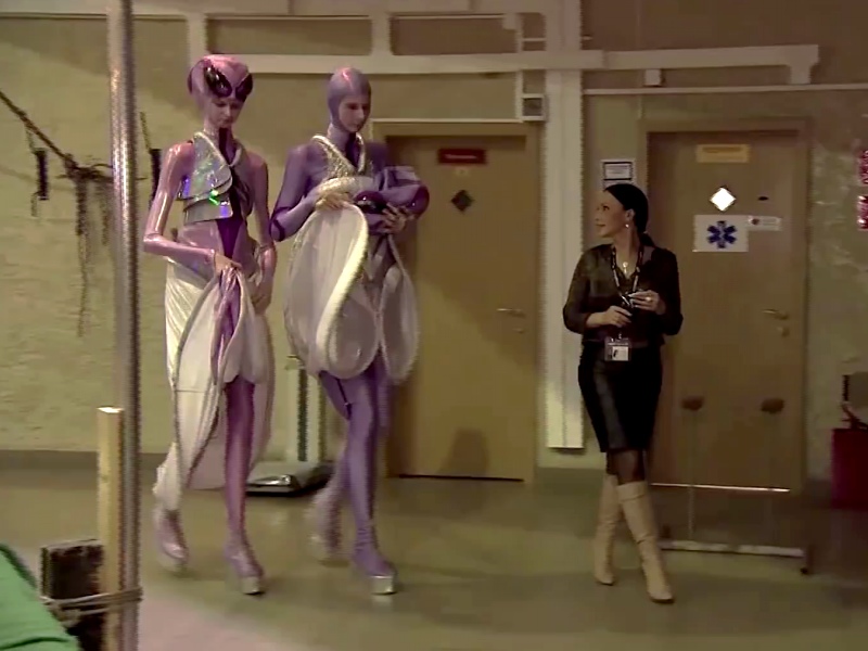 Großwüchsigen, den vermeintlichen Aliens (die spacig gekleideten Damen),
