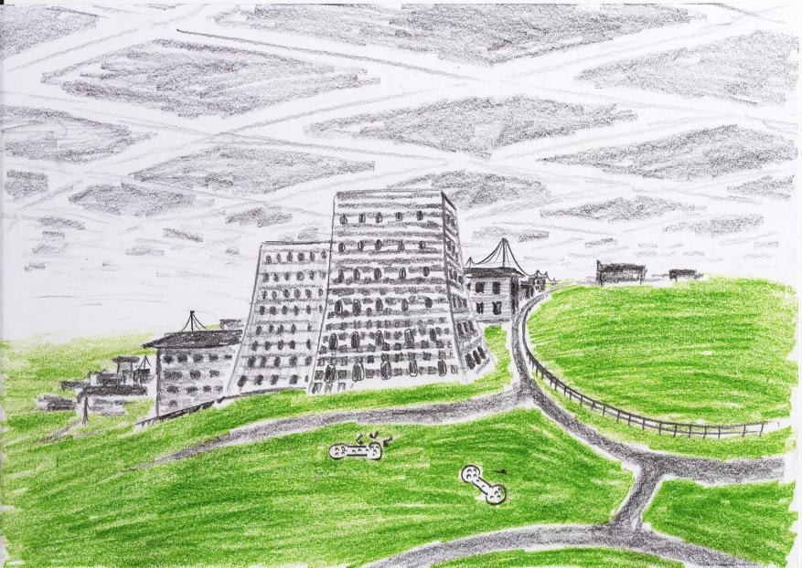 In dieser Kolonie gibt es Ortschaften, Verkehrsnetze, Beweidung, Wassernetze, Hügel – fast schon eine kleine Welt für sich. Doch es gibt keinen blauen Himmel, keine Wolken und des Nachts keine Sterne – alles worauf man schaute, wenn man seinen Blick nach oben richtete, war eine Plastikdecke, die einer Eisdecke nachempfunden wurde.