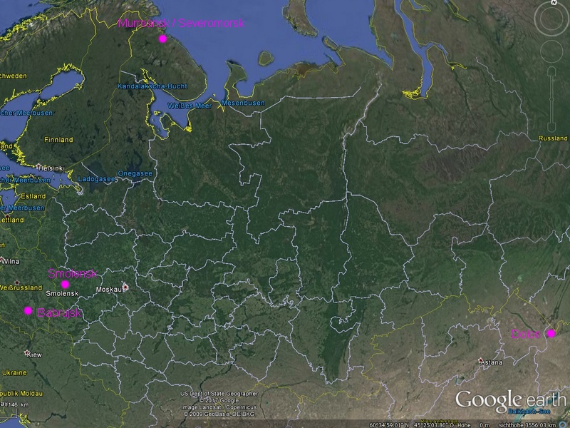 Etwas nordöstlich von Severomorsk befindet sich ein Gebiet, welches unter größter Geheimhaltung liegen dürfte, denn auf dem ganzen Komplex befindet sich kein einziges Google-Earth-Bild. Dafür befinden sich dort offensichtlich so etwas wie unterirdische Depots mit Kriegsgerät.