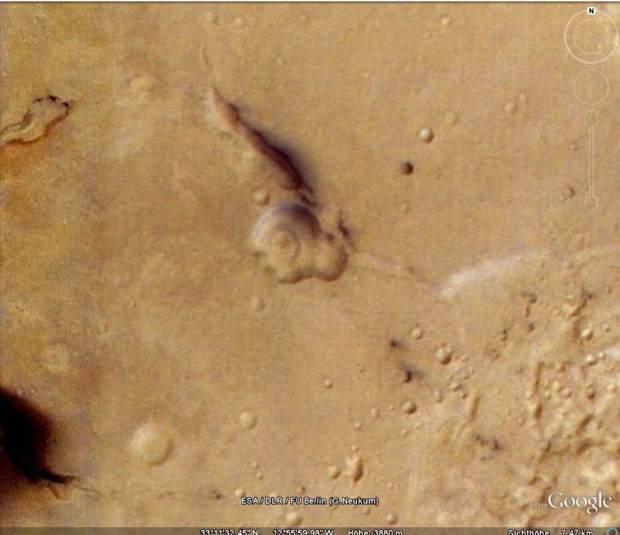 Klar, dass man, als es später deutlich bessere Satellitenfotos vom Mars gab, nach weiteren solcher künstlich bearbeiteten Marsbereiche Ausschau hielt. Auch auf unserer Erde kennen wir einige großformatige Bildnisse. Bestes Beispiel wäre wohl die Sphinx, die schon zu einer Zeit entstand, die wir mit unseren Geschichtschroniken nicht mehr abgleichen können. Einer Zeit also, in der hier Bauherren am Werke waren, die ihre Wurzeln nicht auf der Erde hatten. Viele vermuten, dass Bewohner vom Mars einst auf der Erde siedelten, als ihr Planet zusehens unbewohnbarer wurde. Von daher wäre es logisch, Vergleichbares auch auf dem Mars zu suchen.