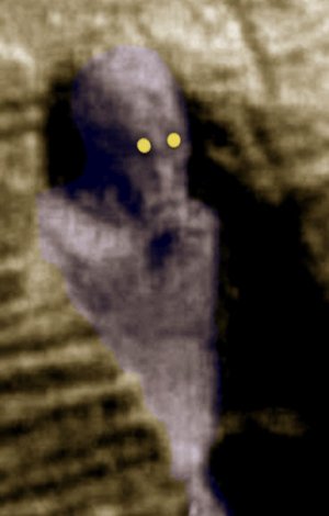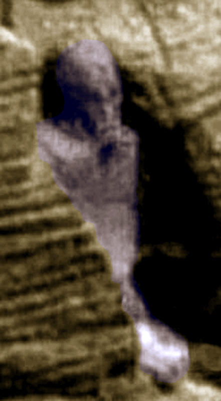 Ist diese "Statue" nur ein Spiel von Licht und Schatten? Für den Fall, dass sich um ein echtes Bild handelt, ist hier die Physiognomie eines Außerirdischen dargestellt. Man achte besonders auf die großen, schräg zur Seite gestellten Augen, die für einige Alienrassen typisch sind..
