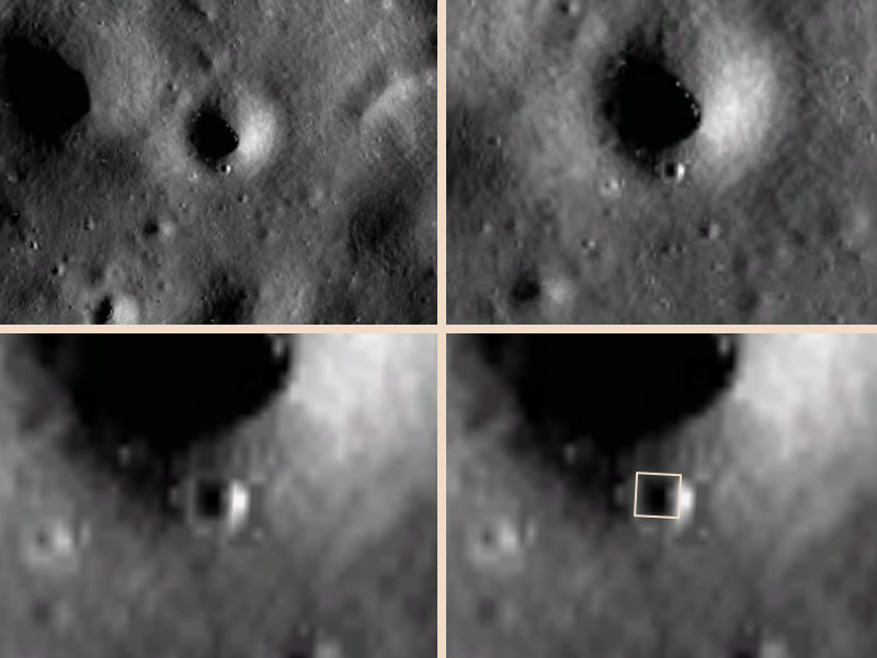 Auf der Mondrückseite ist ein Bereich von etwa 325 x 300 km in etwas besserer Auflösung auf Google Earth zu finden*. Wen wundert es, dass es dort einiges zu finden gibt, was nicht ganz natürlich aussieht. Wäre die Auflösung nur um den Faktor 4 besser, dann hätte man bei vielen "Objekten" Gewissheit, ob man es nur mit natürlichen oder in der Tat doch mit künstlich geschaffenen Strukturen(Objekten) zu tun hat.